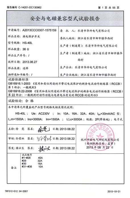 安全与电磁兼容型式试验报告